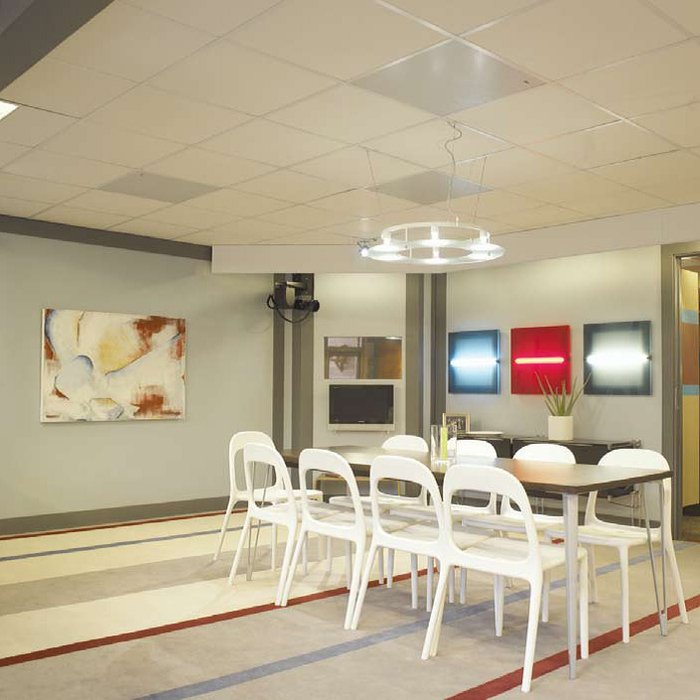 - простота установки, монтаж непосредственно в ячейки подвесного потолка;